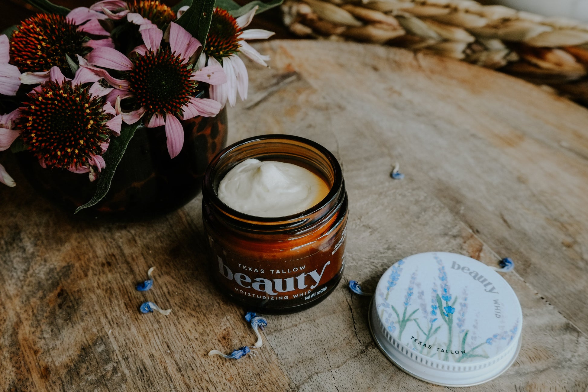 Ingredients: Grass-fed and Finished KPH Tallow from Texas Beef, Pesticide-free Jojoba Oil, House Made Whole Plant Extracts of Organic Lavender Buds, Organic Frankincense Resin, *Rosemary Leaf