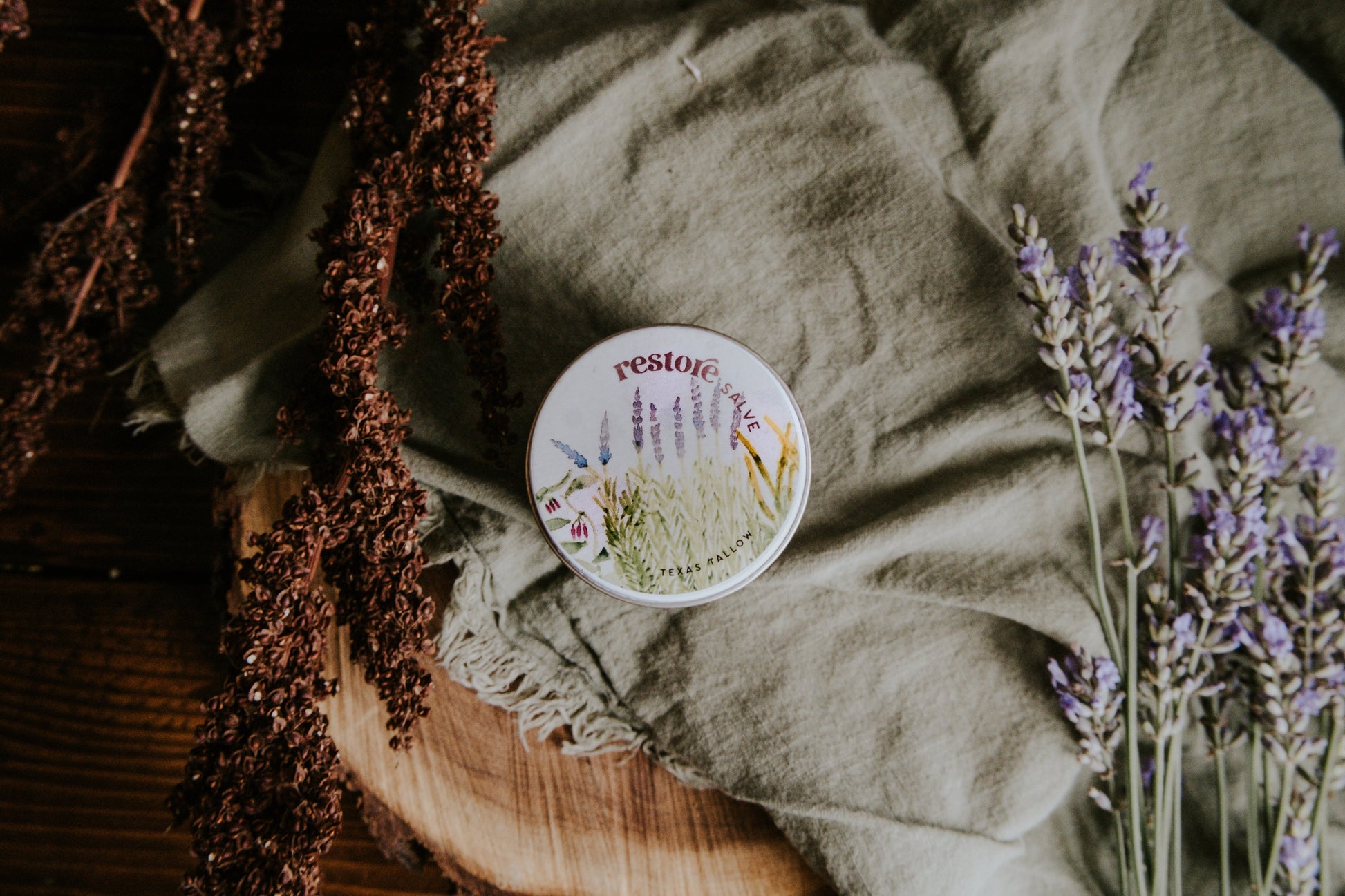 Texas Tallow Restore Salve is designed for pregnant bellies, scars, scrapes, bug bites and so much more! It's full of herbs that help the skin return to a normal, healthy state.